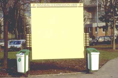 l'expression libre doit pouvoir être contrôlée. Toute expression est interdite en dehors des panneaux, mais toute expression libre est interdite sur ces panneaux (tags, mais aussi pendant les campagnes electorales toute affiche des opposants est recouverte immédiatement...). Lors des élections, une campagnesur des petits drapeaux fut enlevée en moins d'une heure de l'ensemble de la ville par les services municipaux...