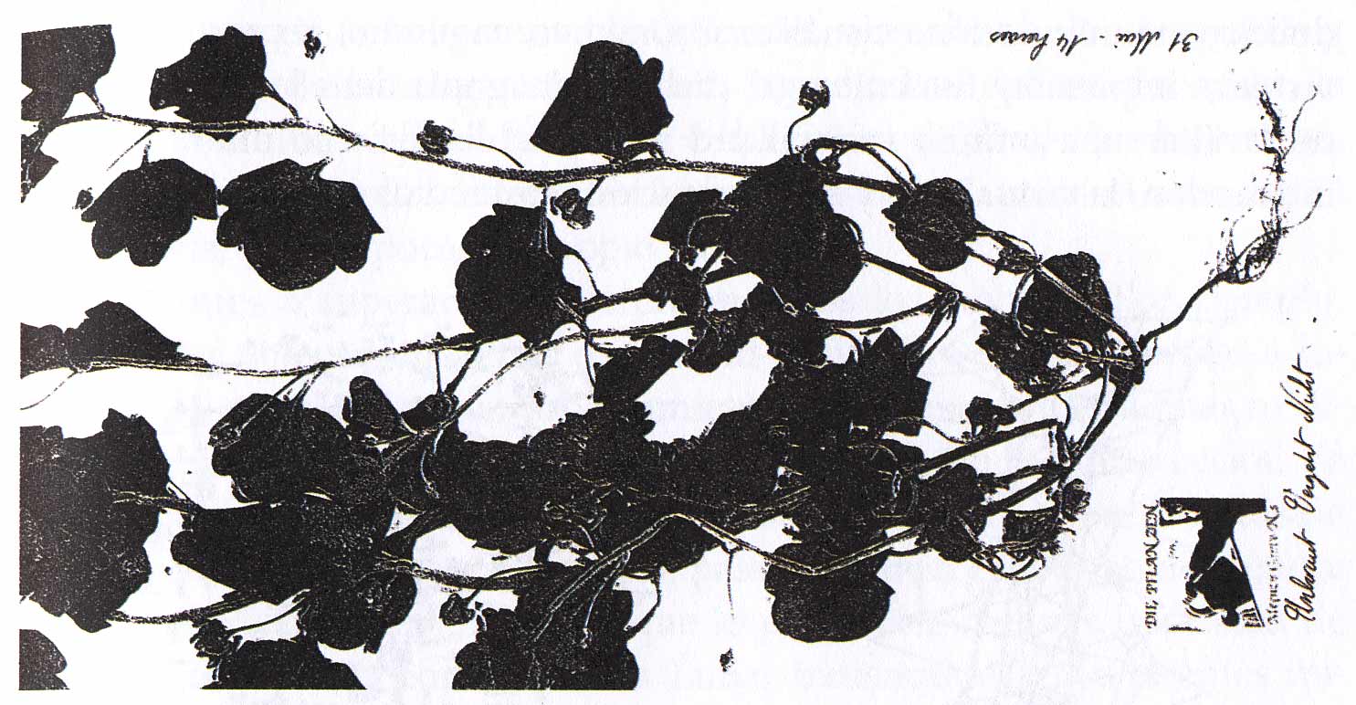 Stéphan Barron, imágenes de los faxes Las plantas de mi jardín. 1991. Arriba: fax de una fotocopia sacada directamente de la planta. 15 de junio de 1991. Abajo: fax de una
